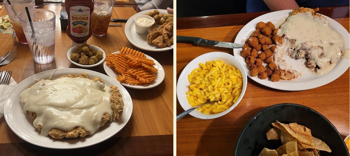 The chicken fried steak wins the hearts of many. Its crispy exterior and juicy interior create a satisfying dish. Diners rave about the loaded tater tots, which are perfect for sharing. The large salad bar receives compliments for its selection, providing fresh ingredients for a healthy meal.